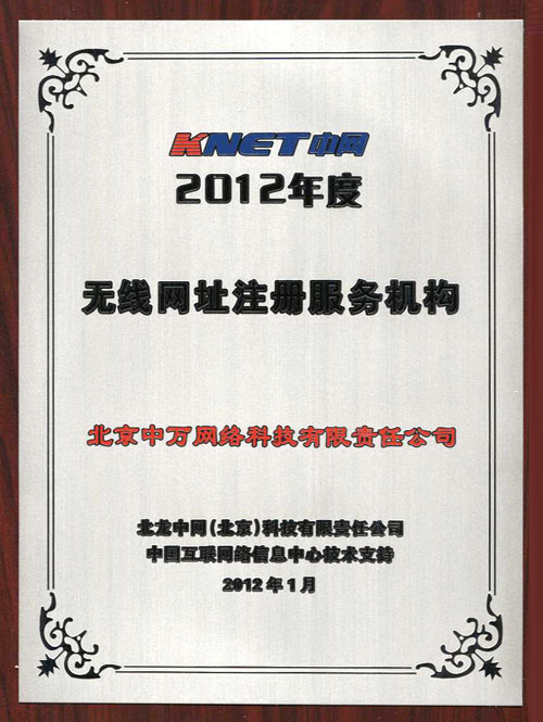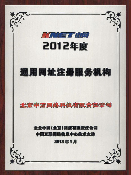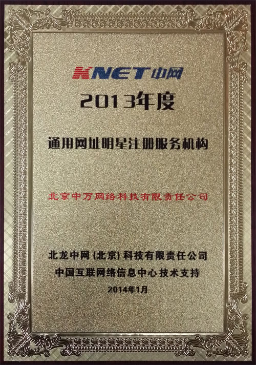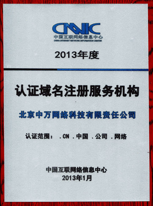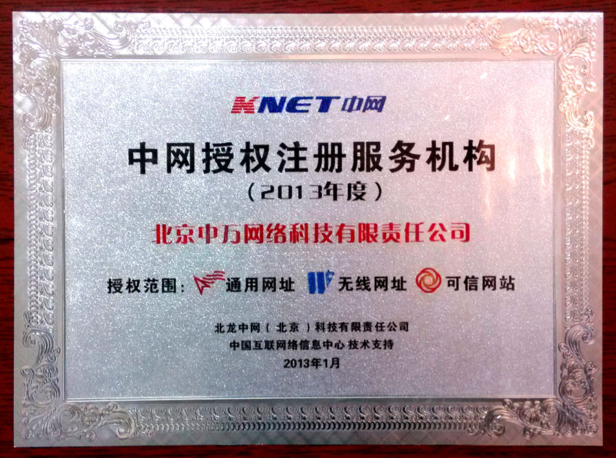 2013年度通用网址、无线网址、可信网站注册服务机构